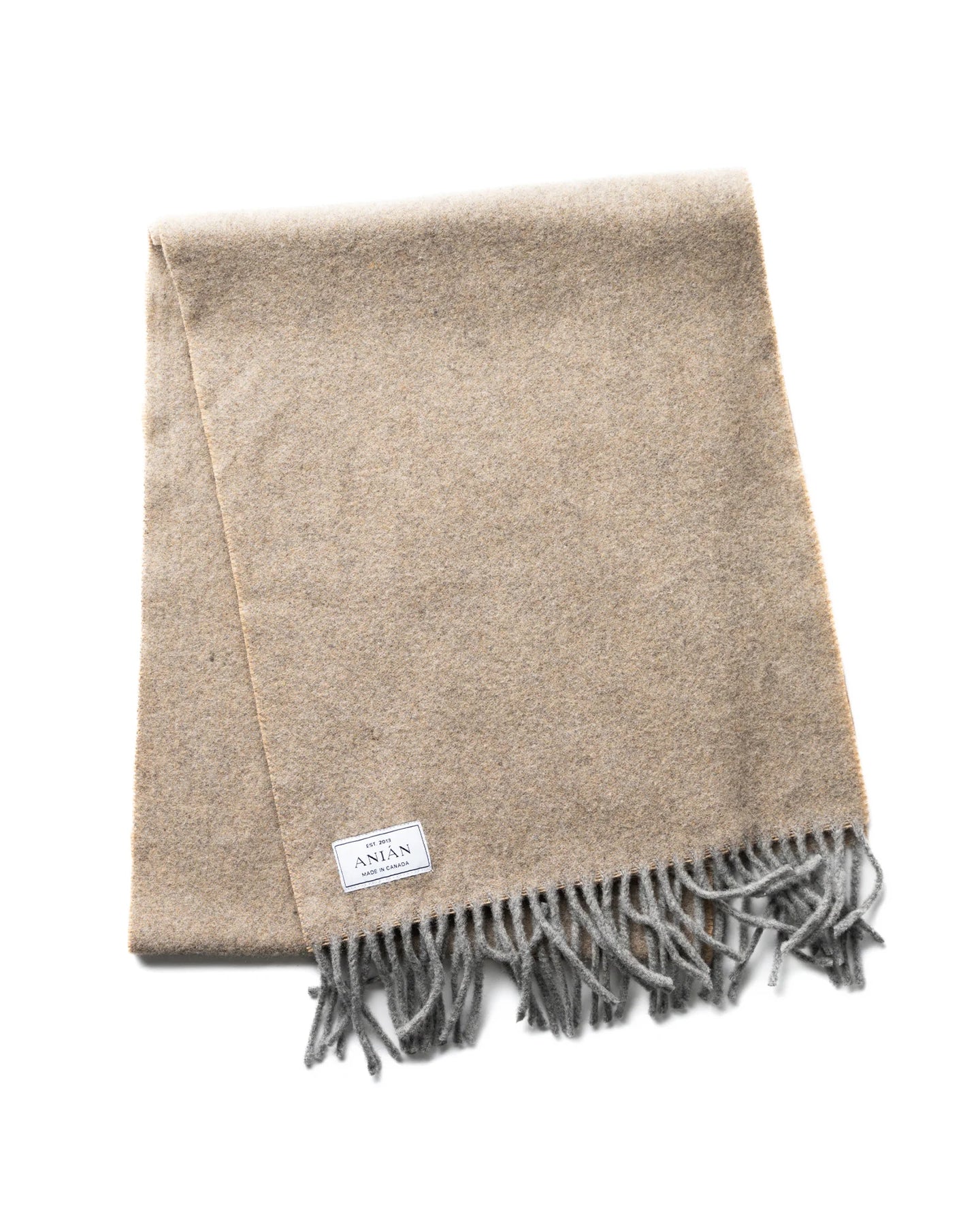 Made from a soft recycled wool blend, ANIÁN's midweight Brushed Wool Scarf offers a luxurious, fleece-like feel for everyday comfort. With a subtle two-tone weave, longer design for wrapping and tassels at each end, it lends effortless warmth and style through the frosty days of fall and winter.