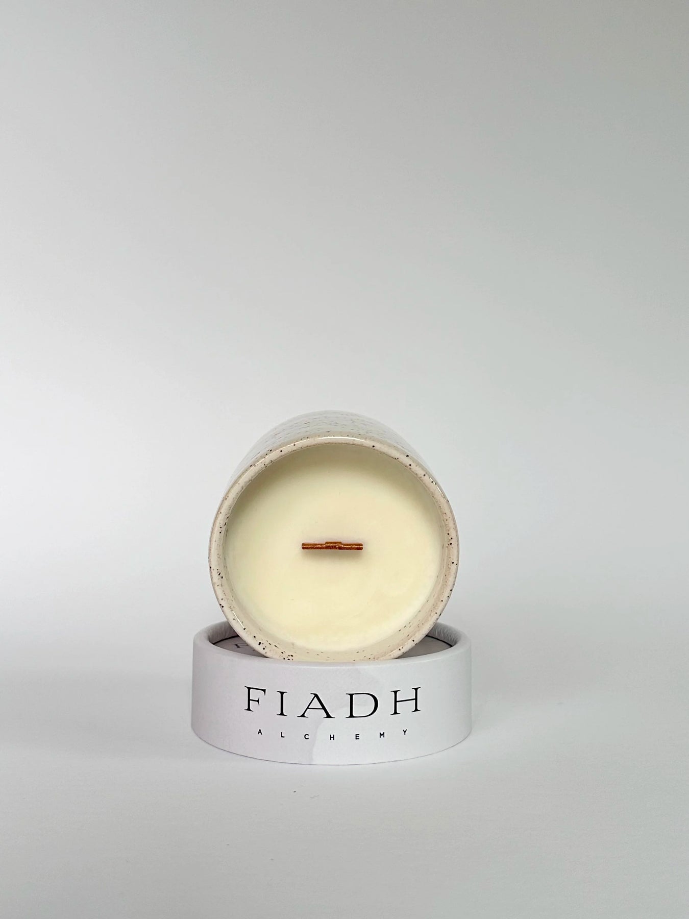 These beautiful candles offer no synthetic fragrances, with 100% essential oil based in a soy, coconut, beeswax blend. Featuring a crackling wood wick made from FSC fruit trees.