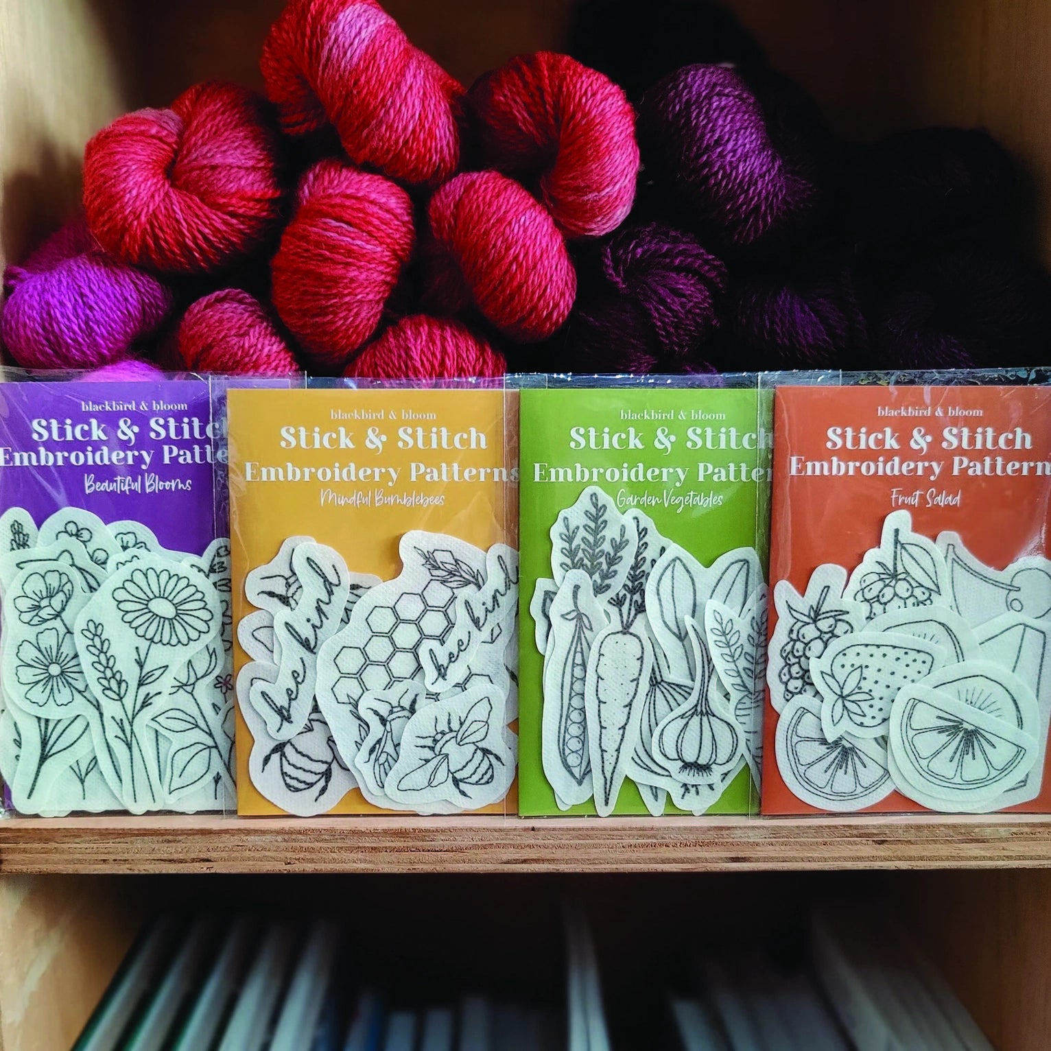 Embroider on clothes and accessories with these stick and stitch designs from Blackbird & Bloom.