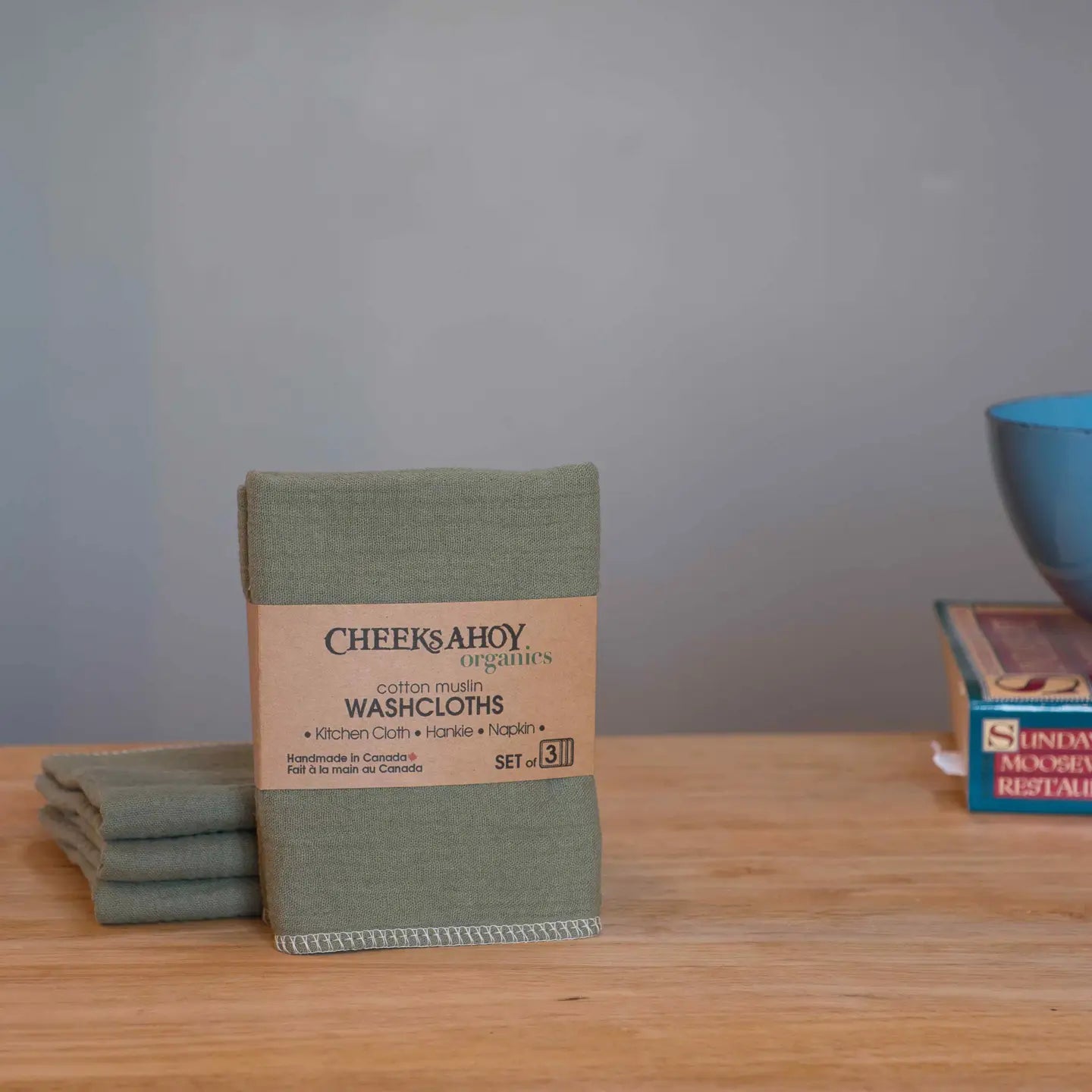 Organic cotton muslin multi-purpose cloths. The muslin fabric is buttery soft and gentle on your skin, making it perfect for use as a baby washcloth, facecloth, napkin or handkerchief. It's also highly absorbent and ideal for use as a kitchen cloth for wiping up spills or drying dishes. They dry quickly and are great for light exfoliation. This type of cotton is specifically woven to get that fun crinkly texture after washing (tip: texture hides stains!)