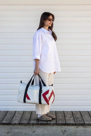 The duffle bag that started it all. Skillfully handcrafted from retired sails, each with their own distinct colour-blocking and design details, this ultra-functional bag looks good enough to go anywhere you do.