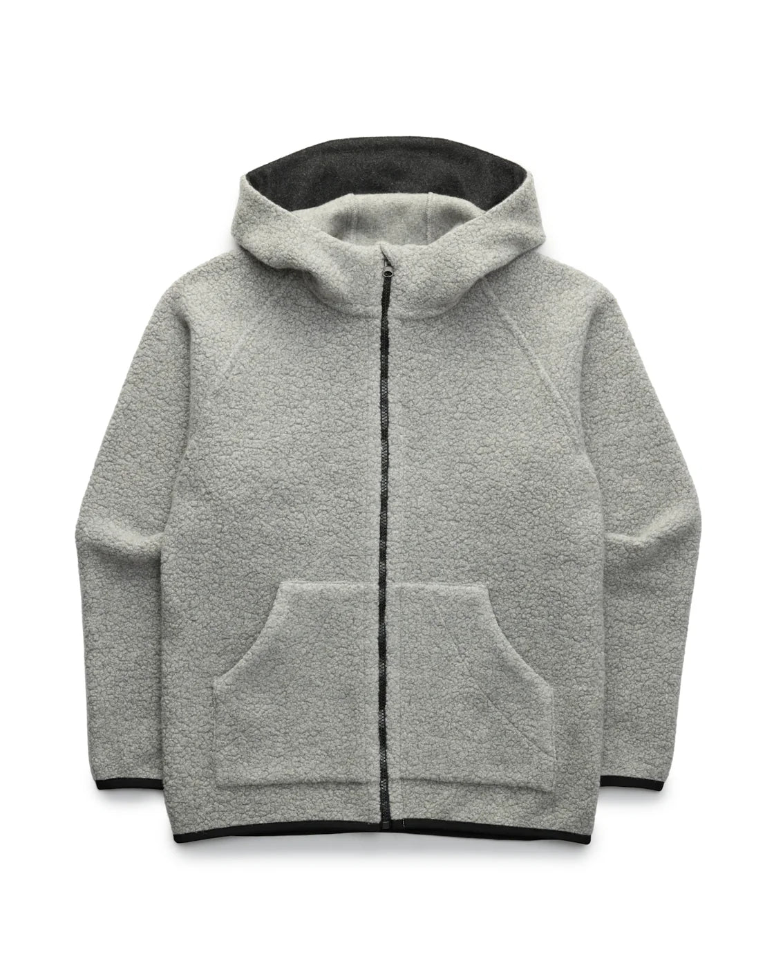 From tideline to alpine, almost all of our adventures lead us into cold, wet and stormy conditions—which are exactly where high-pile Sherpa wool excels. To make an all-weather insulating hoody for everyday or far away, we sourced a soft, warm and movement-friendly recycled wool blend. The breathability and temperature regulation of the thick-knit wool—which synthetic fleeces attempt to imitate—give it exceptional comfort and performance when worn on its own or as a midlayer under a shell, and the Melton-lined hood keeps the wind at bay. A fleece storm flap offers extra warmth, while our unique production process with no added dyes helps further reduce environmental impact.